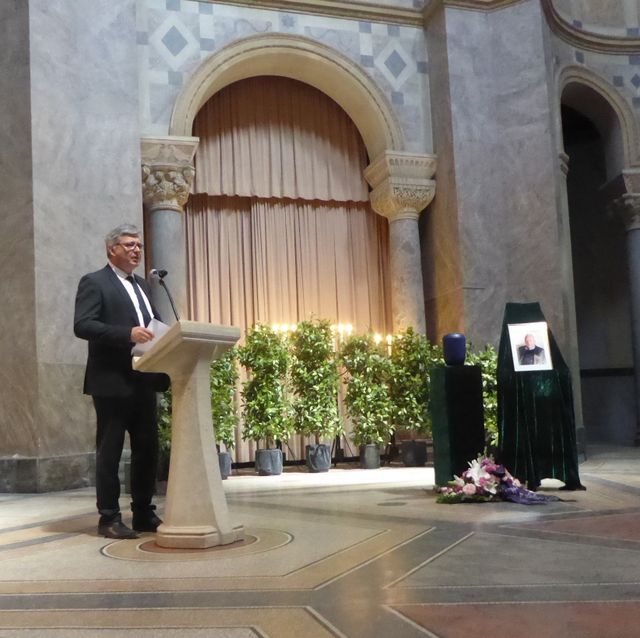 Begräbnis Schuldt -- Prof. Dr. Siegfried Bonk, Vorsitzender der Britting-Stiftung, würdigt Herrn Schuldt